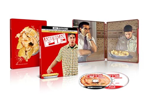 You’ll never look at warm apple pie the same way again! American Pie takes a hysterical look at the goal of four “unlucky in love” high school friends who make the ultimate pact: lose their virginity by prom night. As they try to manipulate their way into the hearts of some of their classmates, their plans often backfire with hilarity. Follow the raging hormones of four teenage boys and their girls as they gear up for the most important night of their lives…the prom? Starring Jason Biggs, Seann William Scott, Alyson Hannigan, Mena Suvari, Chris Klein, Tara Reid, and Natasha Lyonne, with Jennifer Coolidge and Eugene Levy. American Pie Limited Edition Steelbook 4K Ultra HD + Blu-ray + Digital