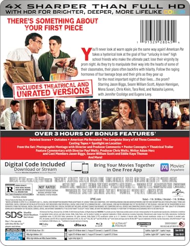 • Includes 4K UHD, Blu-ray and a digital copy of American Pie (Subject to expiration. Go to NBCUCodes.com for details.)