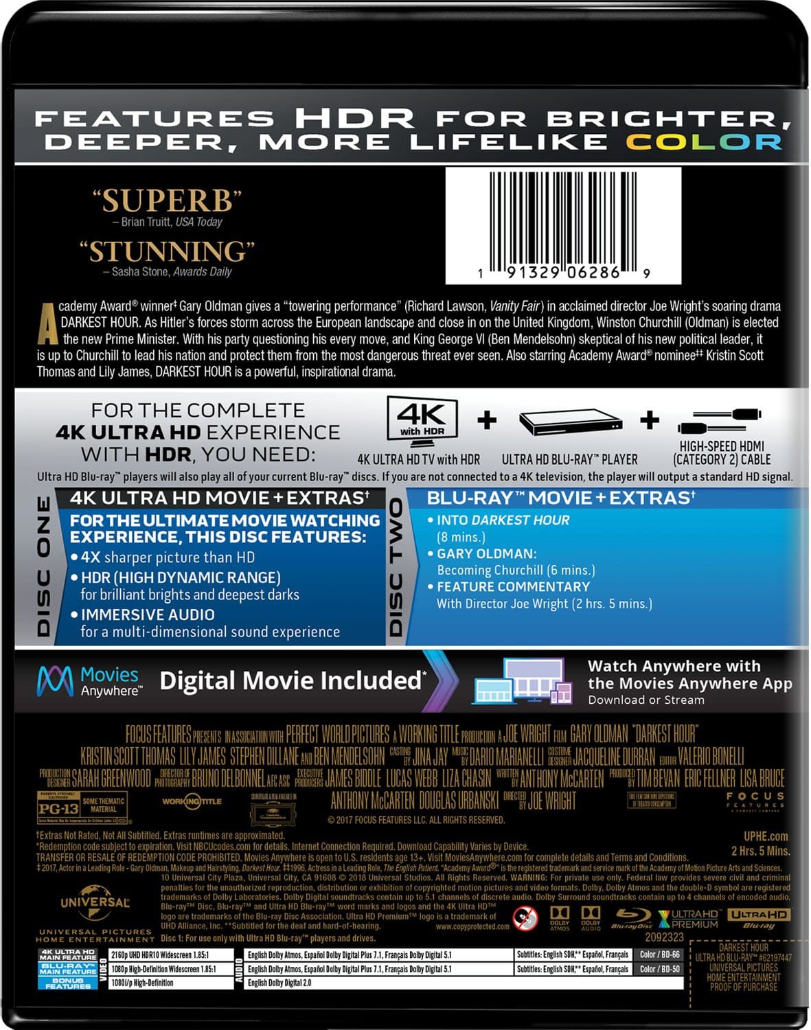 • Includes a digital copy of Darkest Hour (Subject to expiration. Go to NBCUCodes.com for details.)