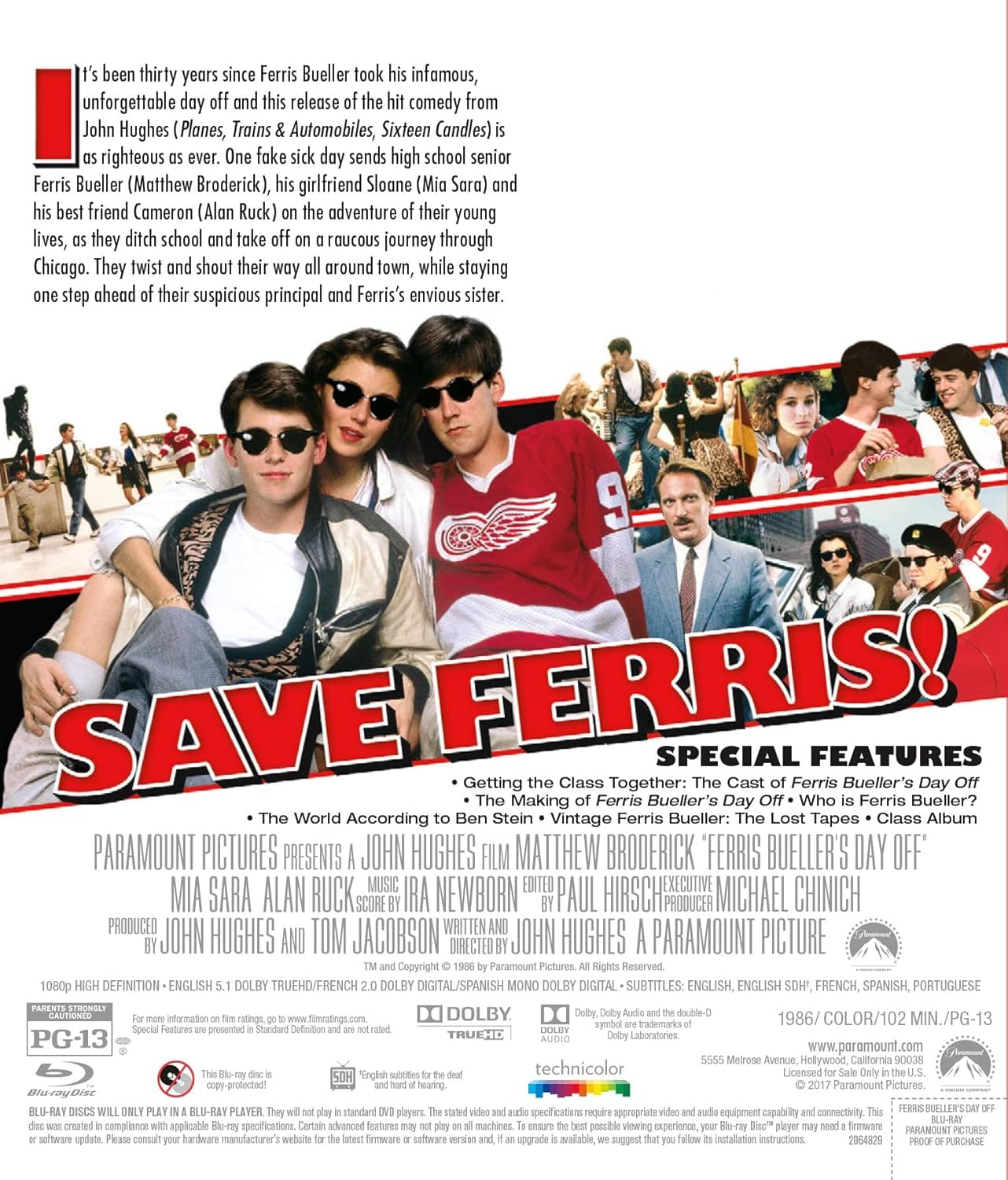 Ferris Bueller, a high school student, fakes sickness to stay at home and spends the rest of the day with his best friend and girlfriend. Meanwhile, his dean tries to spy on him. Ferris Bueller’s Day Off Blu-ray