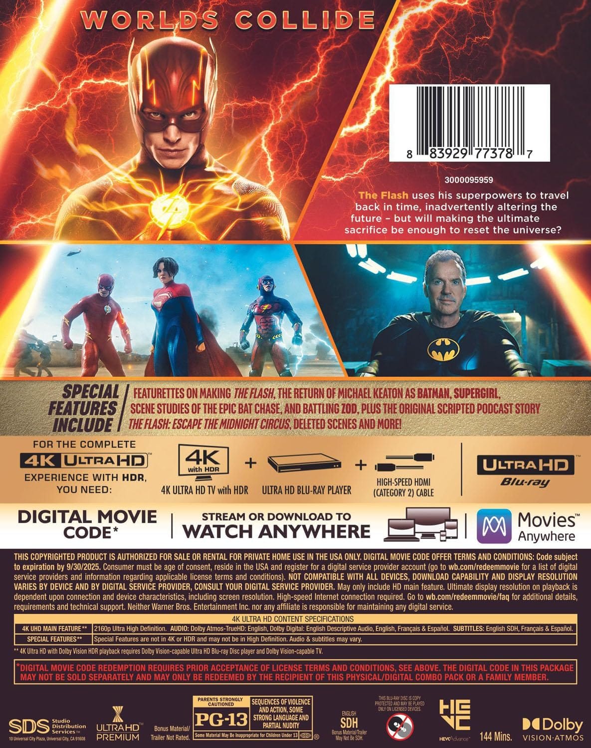 Worlds collide in “The Flash” when Barry uses his superpowers to travel back in time in order to change the events of the past. But when his attempt to save his family inadvertently alters the future, Barry becomes trapped in a reality in which General Zod has returned, threatening annihilation, and there are no Super Heroes to turn to. That is, unless Barry can coax a very different Batman out of retirement and rescue an imprisoned Kryptonian… albeit not the one he’s looking for. Ultimately, to save the world that he is in and return to the future that he knows, Barry’s only hope is to race for his life. But will making the ultimate sacrifice be enough to reset the universe?. The Flash 4K UHD