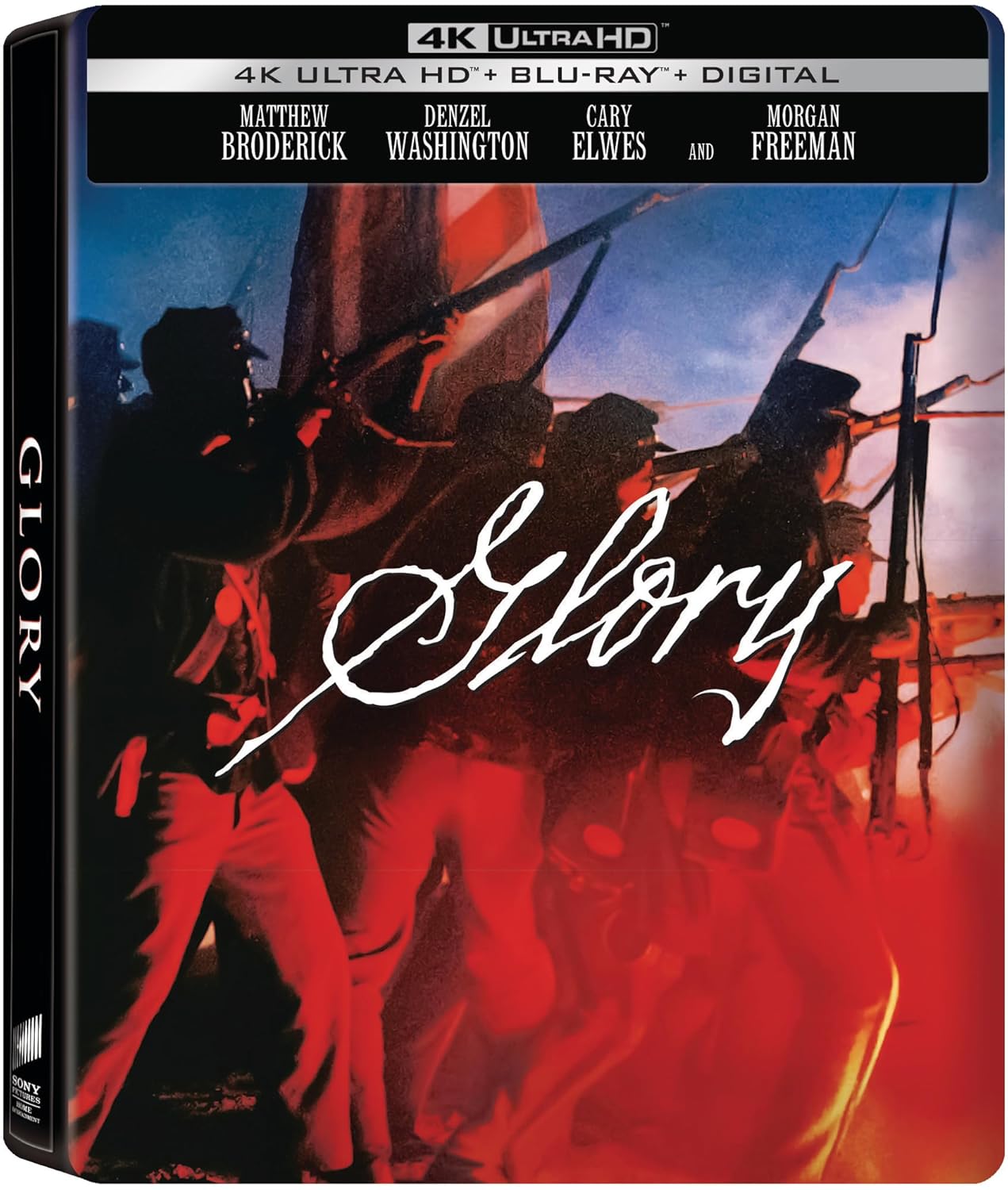 Matthew Broderick and Denzel Washington star in this inspiring story of the first Black regiment to fight for the North in the Civil War. Glory 35th Anniversary SteelBook (4K Ultra HD + Blu-ray + Digital) – 4K + Blu-ray + Digital [4K UHD]