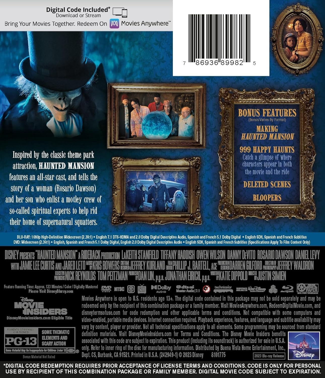 A woman and her son enlist a motley crew of so-called spiritual experts to help rid their home of supernatural squatters. Haunted Mansion Blu-ray