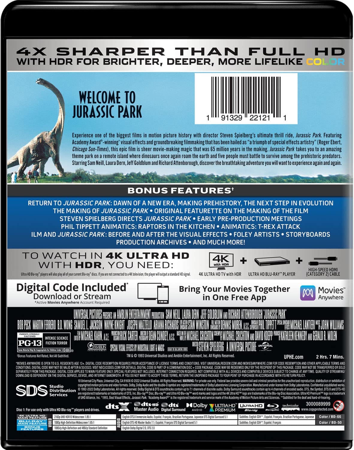 - Includes 4K UHD, Blu-ray and a digital copy of Jurassic Park (Subject to expiration. Go to NBCUCodes.com for details.)