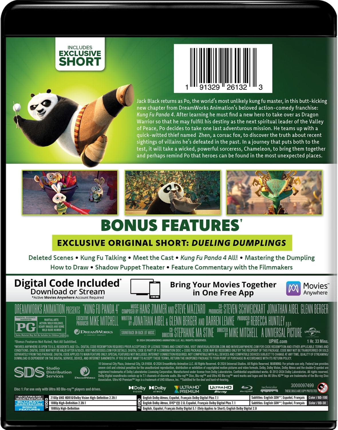 - Includes 4K UHD, Blu-ray and a digital copy of Kung Fu Panda 4 (Subject to expiration. Go to NBCUCodes.com for details.)