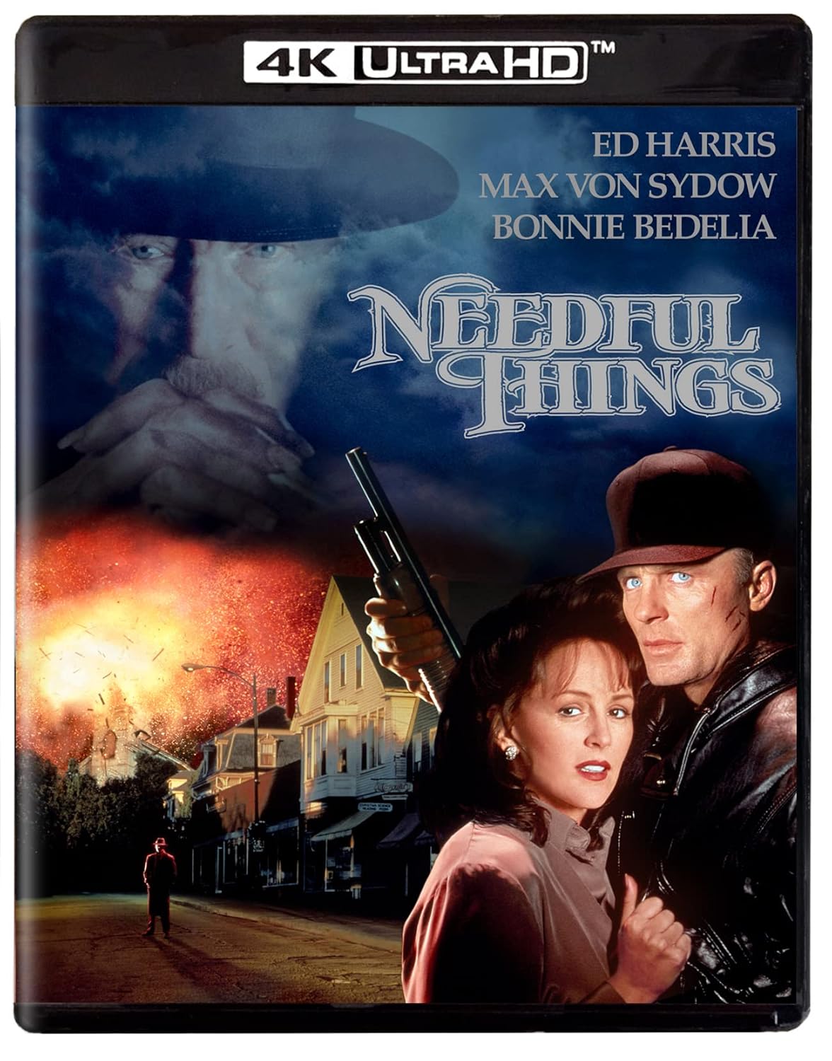 Welcome to Castle Rock, Maine, a lovely place to live…if you don’t mind selling your soul! Acting greats Ed Harris (The Abyss) and Max von Sydow (3 Days of the Condor) head an exceptional cast—including Bonnie Bedelia (Die Hard), J.T. Walsh (A Few Good Men) and Amanda Plummer (Pulp Fiction)—in this supernatural thriller that’s dark, haunting and a hell of a good scare! Sheriff Alan Pangborn (Harris) has a devil of a problem: Suddenly all the residents of his sleepy little town are dying…to kill each other. But at least business is still booming, especially at a new antique store. The shop’s mysterious owner, Leland Gaunt (the nerve-shattering von Sydow), has something for everyone, and his prices are always reasonable: just one small favor…oh, and, of course, eternal damnation! Needful Things comes stylishly directed by Fraser C. Heston (The Crucifer of Blood) and scripted by W.D. Richter (Invasion of the Body Snatchers) from the #1 bestselling novel by the crowned king of horror, Stephen King (The Dead Zone, Cujo, Misery). This special edition also includes an HD Up-res of the 191-minute TV cut of the film. Needful Things 4KUHD [Blu-ray]
