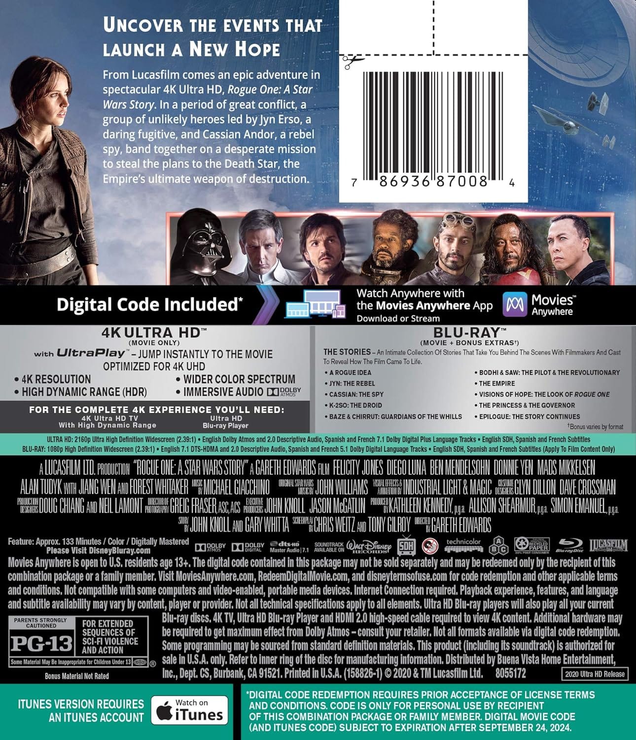 Jyn’s father is forcibly taken by the Galactic Empire to help them complete the Death Star. When she grows up, she joins a group of resistance fighters who aim to steal the Empire’s blueprints. Rogue One [Blu-ray]