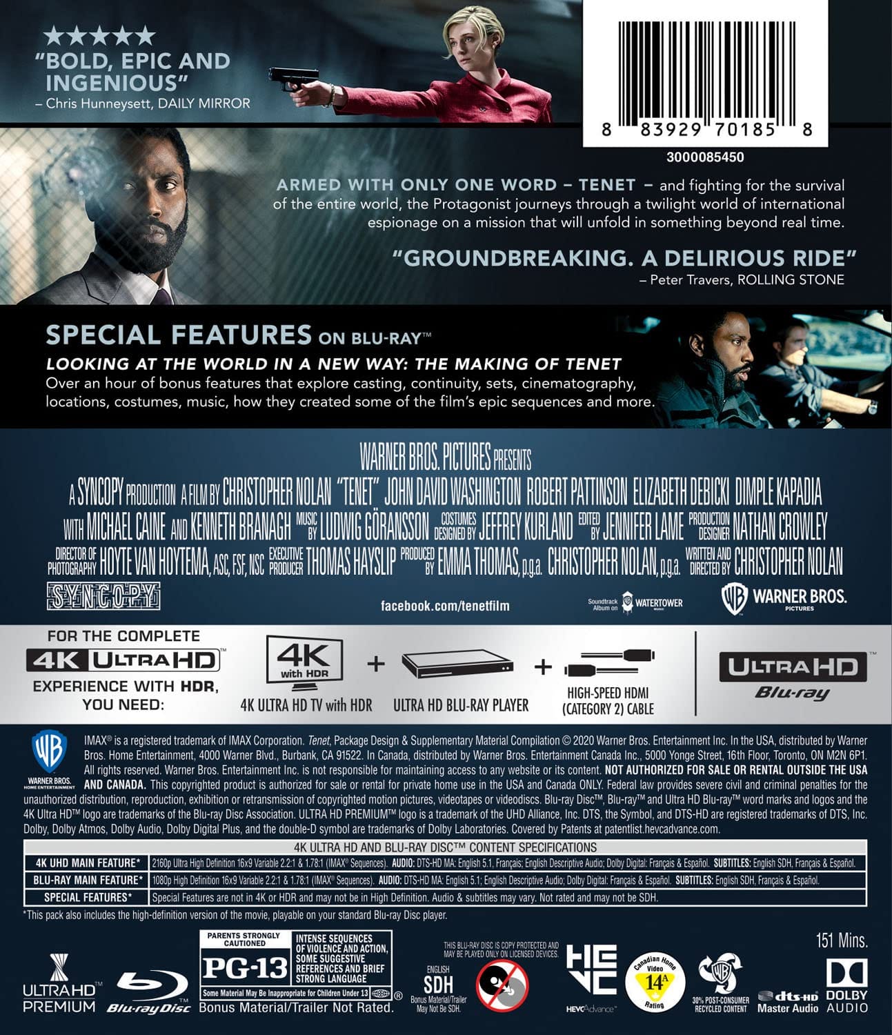 Tenet [Blu-ray].When a few objects that can be manipulated and used as weapons in the future fall into the wrong hands, a CIA operative, known as the Protagonist, must save the world. Tenet 4K Ultra HD + Blu-ray