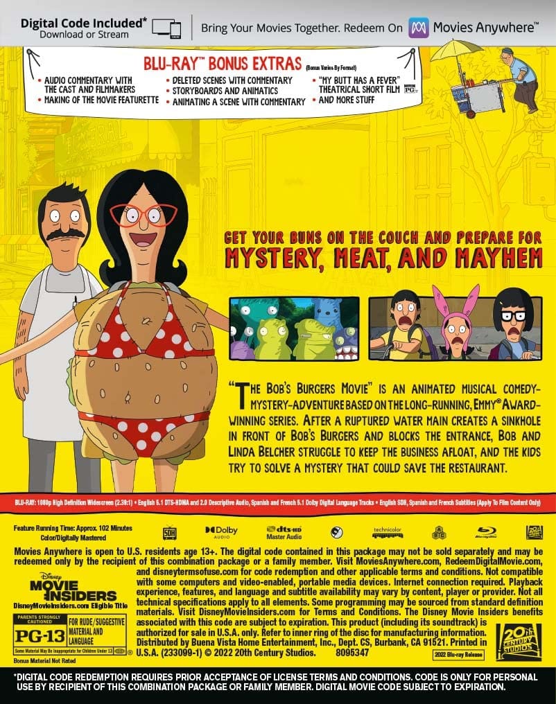The story begins when a ruptured water main creates an enormous sinkhole right in front of Bob’s Burgers, blocking the entrance indefinitely. Based on the animated FOX television series ‘Bob’s Burgers’ created by Loren Bouchard. The Bob’s Burgers Movie Blu-ray