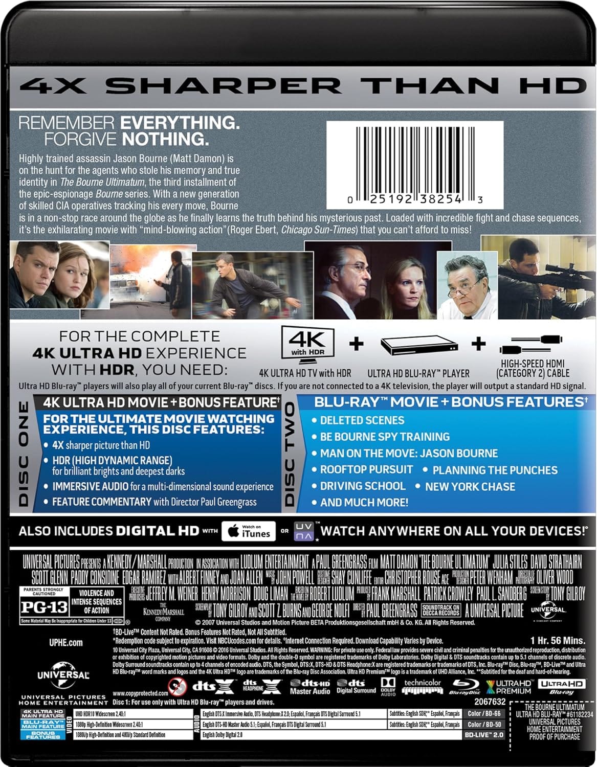 Highly trained assassin Jason Bourne (Matt Damon) is on the hunt for the agents who stole his memory and true identity in The Bourne Ultimatum, the third installment of the epic-espionage Bourne series. With a new generation of skilled CIA operatives tracking his every move, Bourne is in a non-stop race around the globe as he finally learns the truth behind his mysterious past. Loaded with incredible fight and chase sequences, it’s the exhilarating movie with “mind-blowing action” (Roger Ebert, Chicago Sun-Times) that you can’t afford to miss! The Bourne Ultimatum Blu-ray