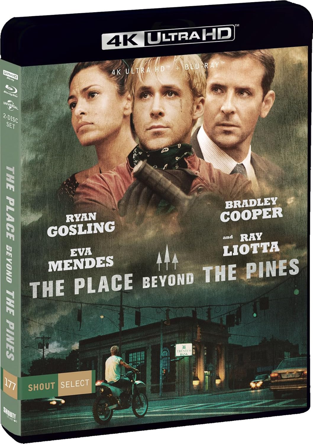 Academy Award nominees Ryan Gosling and Bradley Cooper star in this epic, riveting crime drama about the unbreakable bond between fathers and sons. Luke (Gosling) gives up his job as a motorcycle stunt performer in order to provide for his new family. Avery (Cooper), an ambitious rookie cop, struggles to make his way in a corrupt police department. Their two worlds collide when Luke takes part in a string of bank robberies and the consequences of their shocking confrontation will reverberate into the next generation. From the acclaimed director of Blue Valentine and co-starring Eva Mendes and Ray Liotta, this engaging and powerful thrill ride has critics raving, “5 stars! The Place Beyond the Pines is huge in its ambition, huge in its achievement!” (Mick LaSalle, The San Francisco Chronicle) The Place Beyond the Pines 4K Ultra HD + Blu-ray