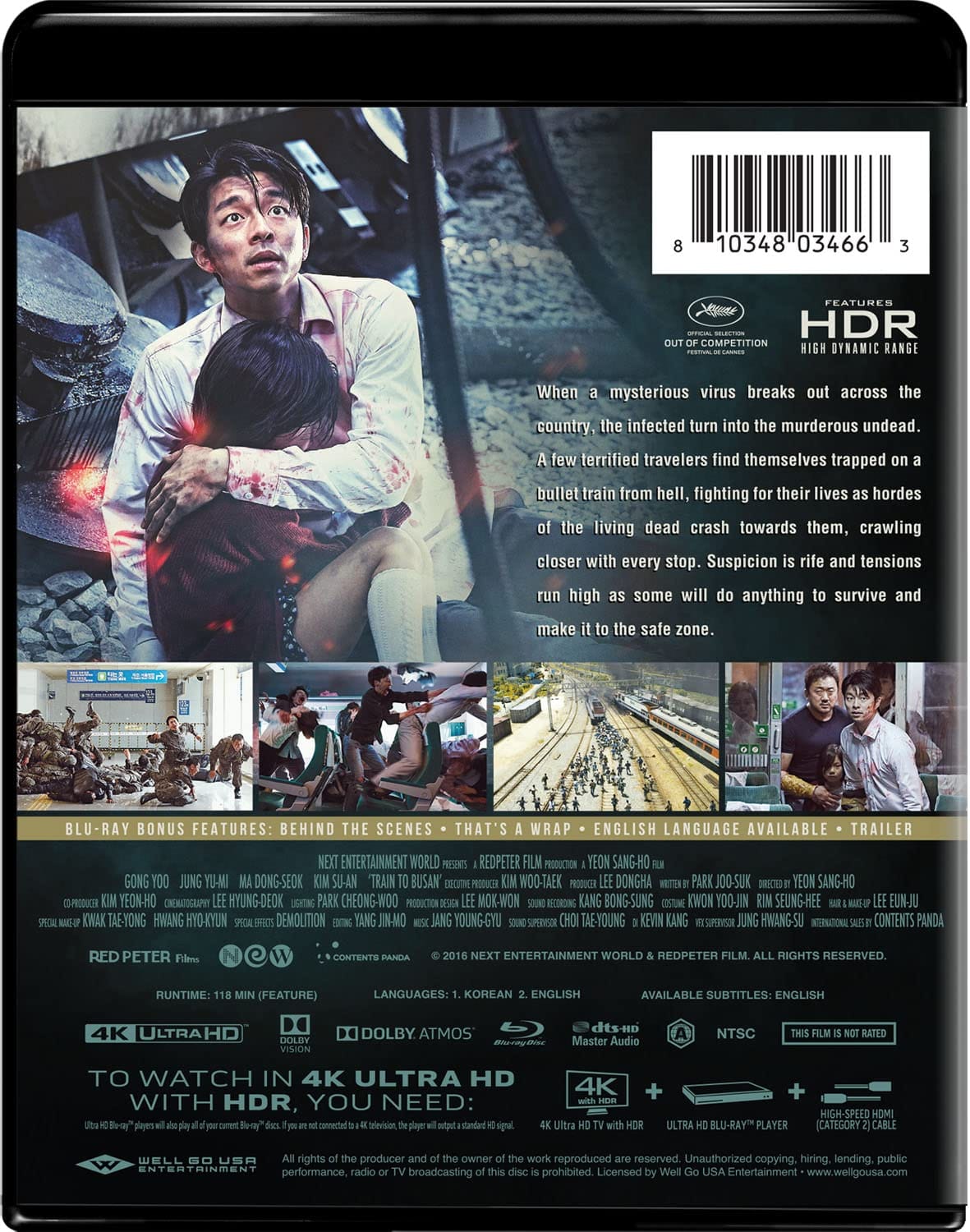 When a mysterious virus breaks out across the country, the infected turn into the murderous undead. A few terrified travelers find themselves trapped on a bullet train from hell, fighting for their lives as hordes of the living dead crash towards them, crawling closer with every stop. Suspicion is rife and tensions run high as some will do anything to survive and make it to the safe zone. Train to Busan 4K UHD