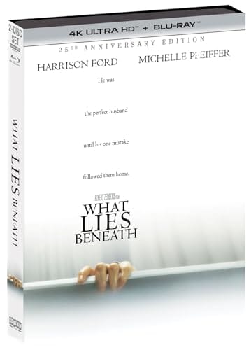 Creepy suspenser from Robert Zemeckis (Back to the Future, Forrest Gump) stars Michelle Pfeiffer (Batman Returns) and Harrison Ford (Star Wars, Indiana Jones) as married couple Claire and Dr. Norman Spencer, who live in a large house near a Vermont lake. While Norman, a university research scientist, works on an important project, Claire begins to see the image of a young woman in water, and, after other bizarre incidents, becomes convinced the house is haunted. What Lies Beneath 25th Anniversary Collector’s Edition 4K Ultra HD + Blu-ray [4K UHD]
